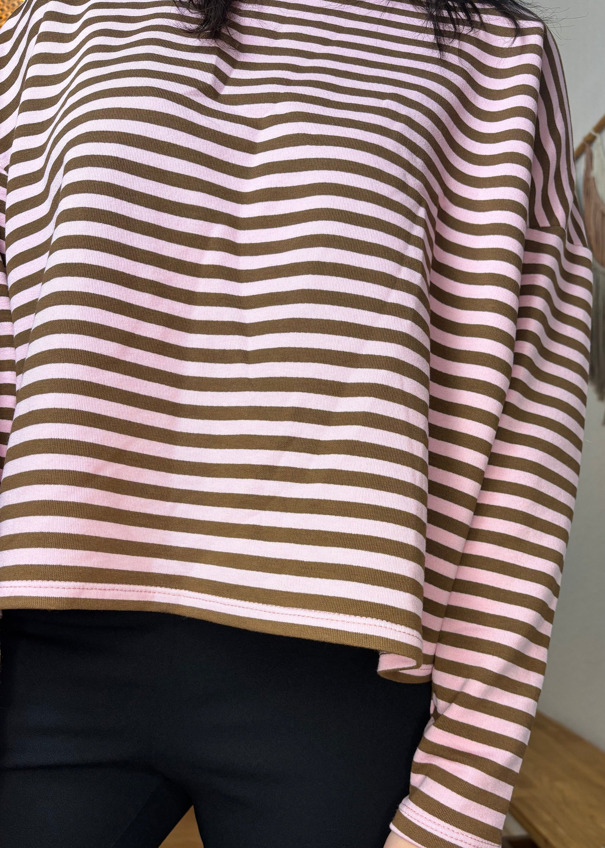 Lana ist ein locker geschnittener Pullover mit Streifenmuster – perfekt für entspannte Alltagslooks und Übergangszeiten. Ob solo getragen oder als Teil eines gemütlichen Layering-Outfits, er bringt Leichtigkeit in jede Garderobe.